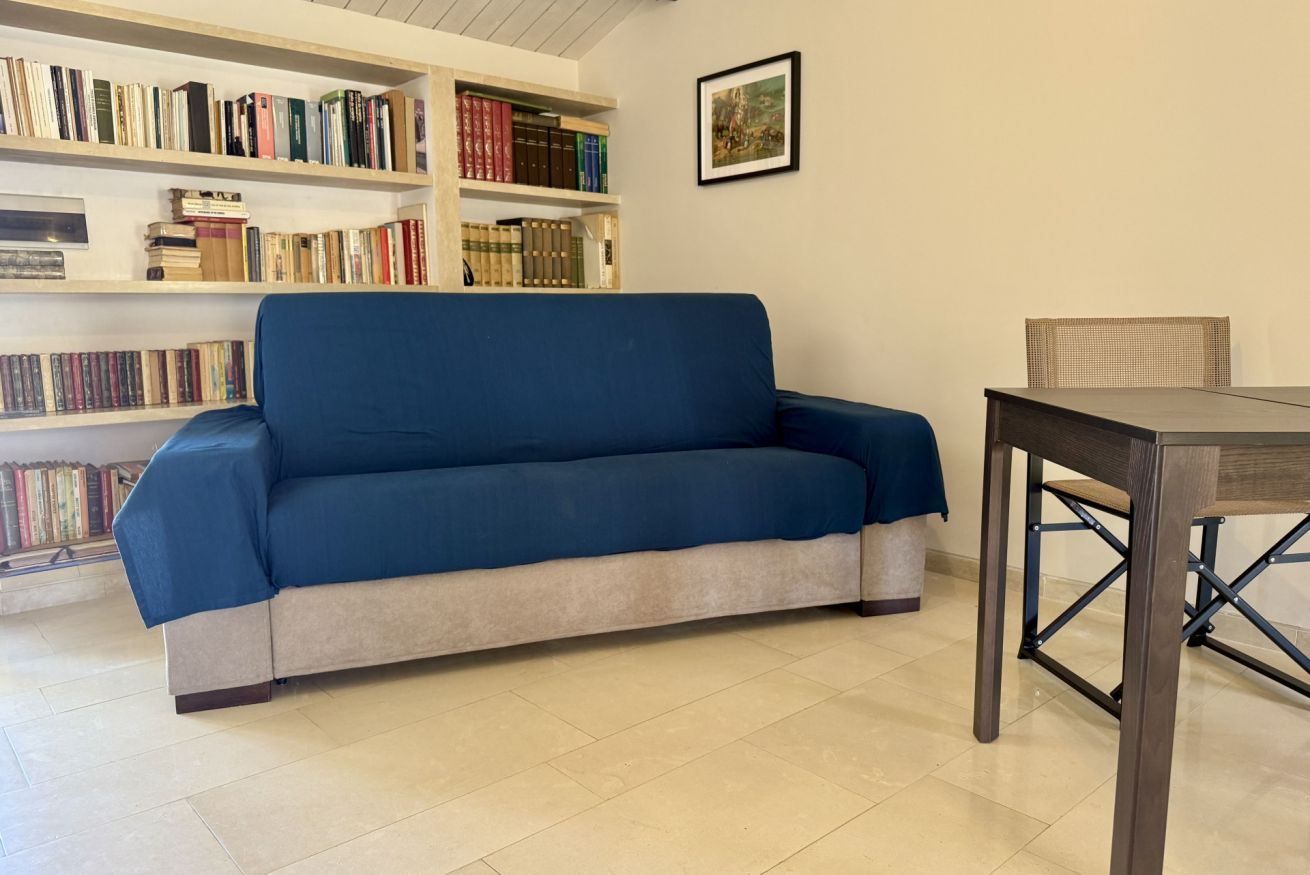 Un soggiorno luminoso e ben arredato, dotato di divano letto, ideale per ospitare fino a due persone in più.