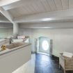 All’entrata si apre direttamente la zona living con angolo relax con grande TV LCD e mobile cucina, illuminata, come il resto delle camere da finestre a velux collocate tra le travi in legno del soffitto e apribili elettronicamente.