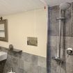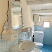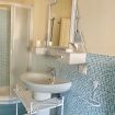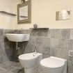 Il bagno ha un comodissimo box doccia con parete in cristallo ed è dotato di tutti i sanitari, compreso il bidet.