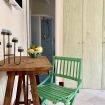 Il piano terra è caratterizzato da un luminoso open space che ospita un salotto di conversazione, un’accogliente alcova con letto matrimoniale in ferro battuto e la zona pranzo con tavolo e sedie.
